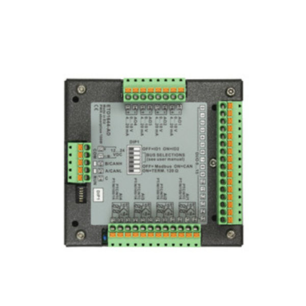 ETD1644 is an I/O card with plug-in connection to Pixsys HMIs for acquisition and management of analogue/digital I/Os directly on the panel via RS485/Modbus RTU serial or CANopen bus.